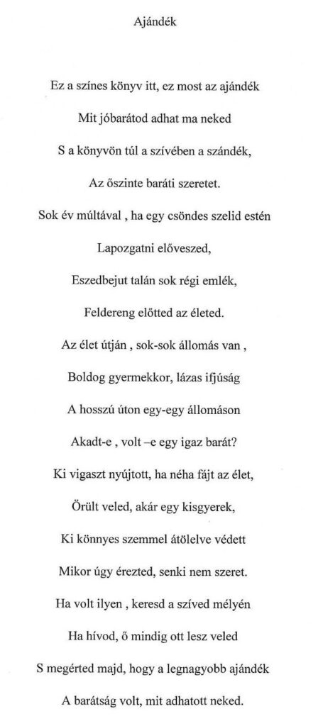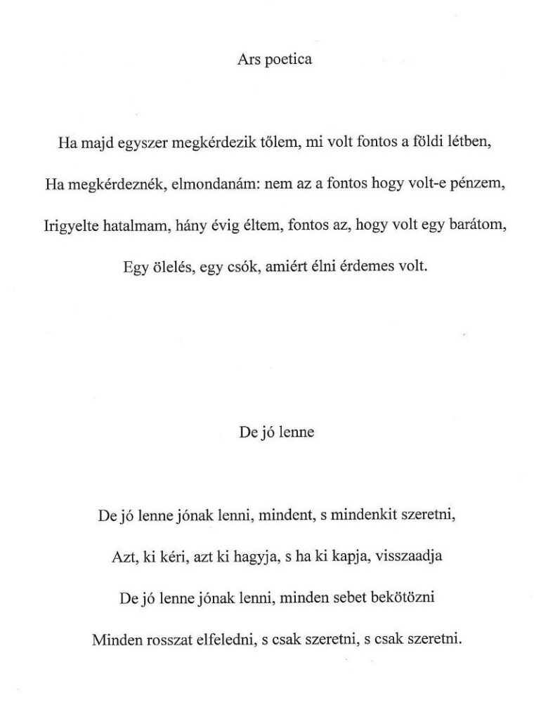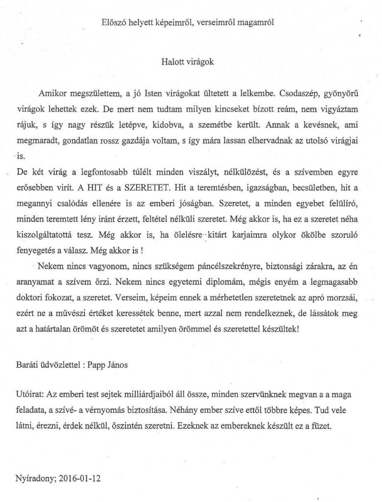 Az alább bemutatott füzetet 2016-ban a költészet napja alkalmából kaptam tőle, s változatlan formában adom közre.